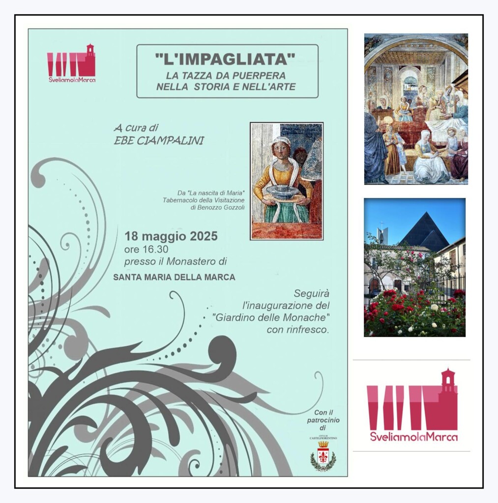 In passato veniva impiegata per servire un pasto alle donne che non si potevano alzare da letto dopo il parto. Stiamo parlando de “L’Impagliata” o “tazza da puerpera”, un contenitore in maiolica dalle origini antichissime, al punto da essere raffigurata in molte opere d’arte. E’ questo il tema dell’iniziativa in programma domenica 18 maggio (ore 16.30) presso il Monastero di Santa Maria della Marca (ingresso gratuito).