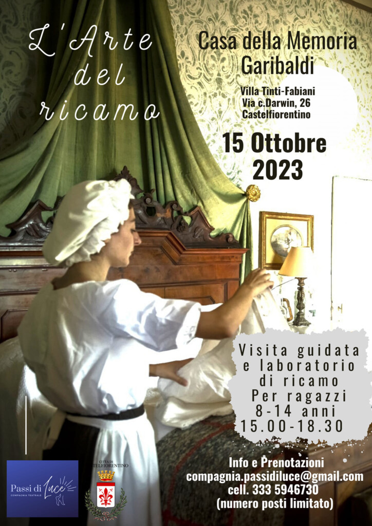 Una visita guidata calata in un’atmosfera d’altri tempi quella in programma domenica 15 ottobre a Petrazzi presso Villa Garibaldi, la dimora storica dove nel 1867 pernottò l’”eroe dei due mondi”. Nel pomeriggio (dalle 15.30) la Compagnia Teatrale “Passi di Luce” ha organizzato infatti una serata del tutto speciale, dedicata alla riscoperta dell’antica arte del ricamo. Una tradizione artigianale molto radicata in Valdelsa, alla base del poderoso slancio scandito dal proliferare delle confezioni a Castelfiorentino negli anni del “miracolo economico”.
