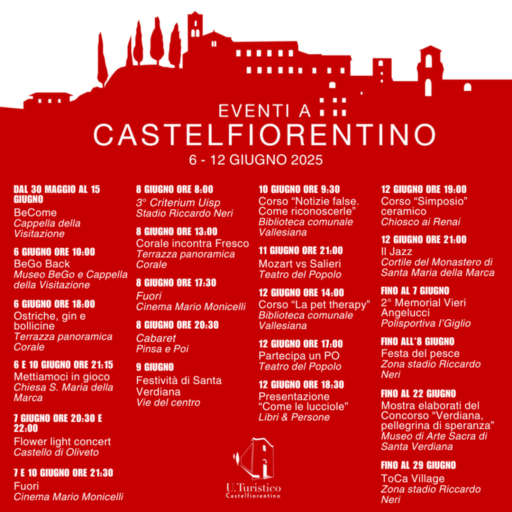 Giugno 5, 2025 Stefania Sussi 174visualizzazioni Da Venerdì 6 a Giovedì 12 Giugno Categories: Eventi Tags: Castelfiorentino, cosa fare, eventi, idee