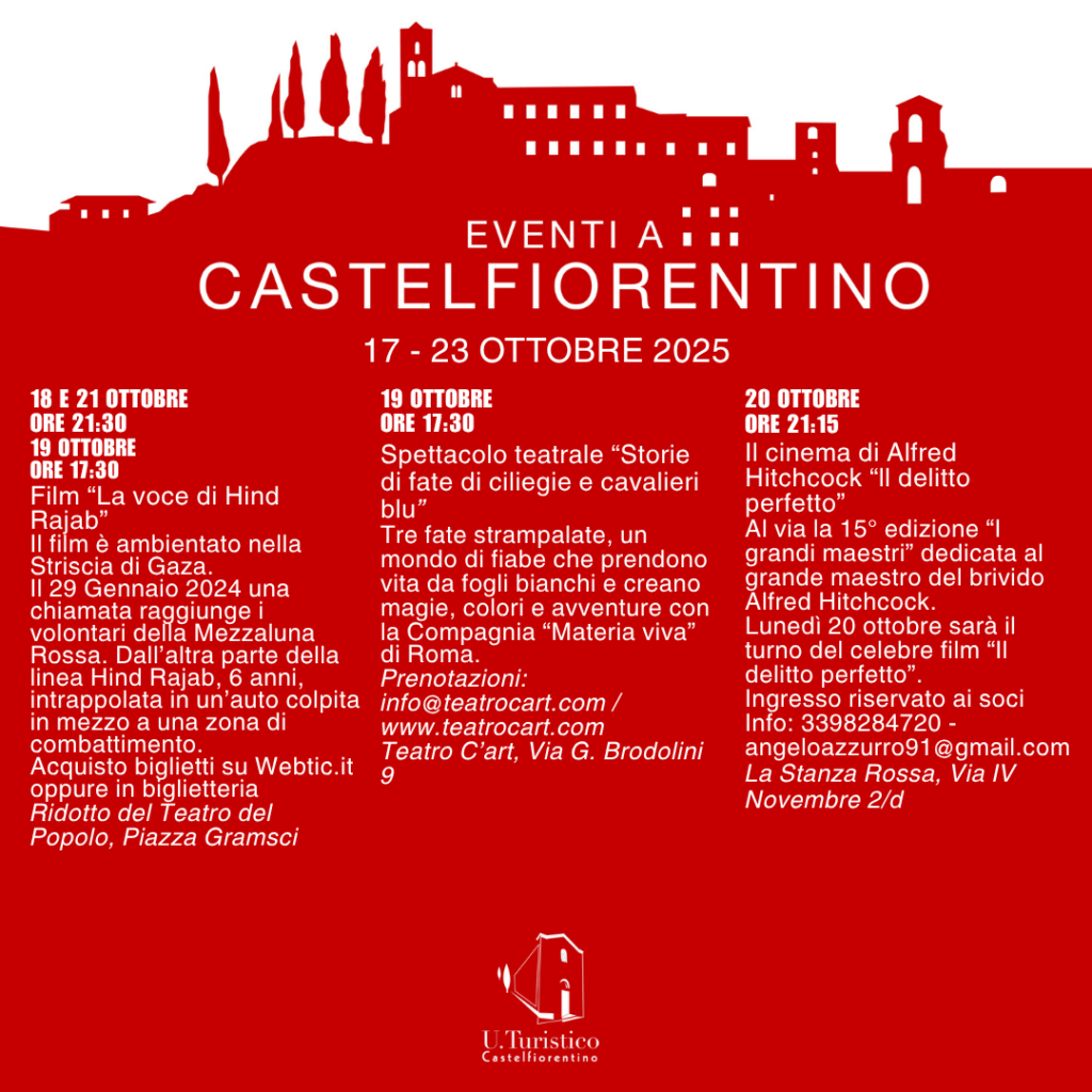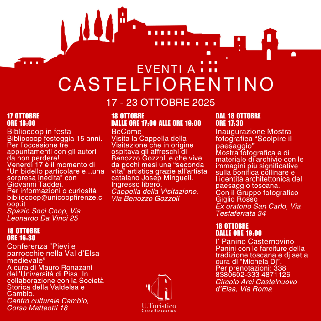 2 ore fa Stefania Sussi 3visualizzazioni Da Venerdì 17 a Giovedì 23 Ottobre Categories: Eventi Tags: Castelfiorentino, cosa fare, eventi, idee