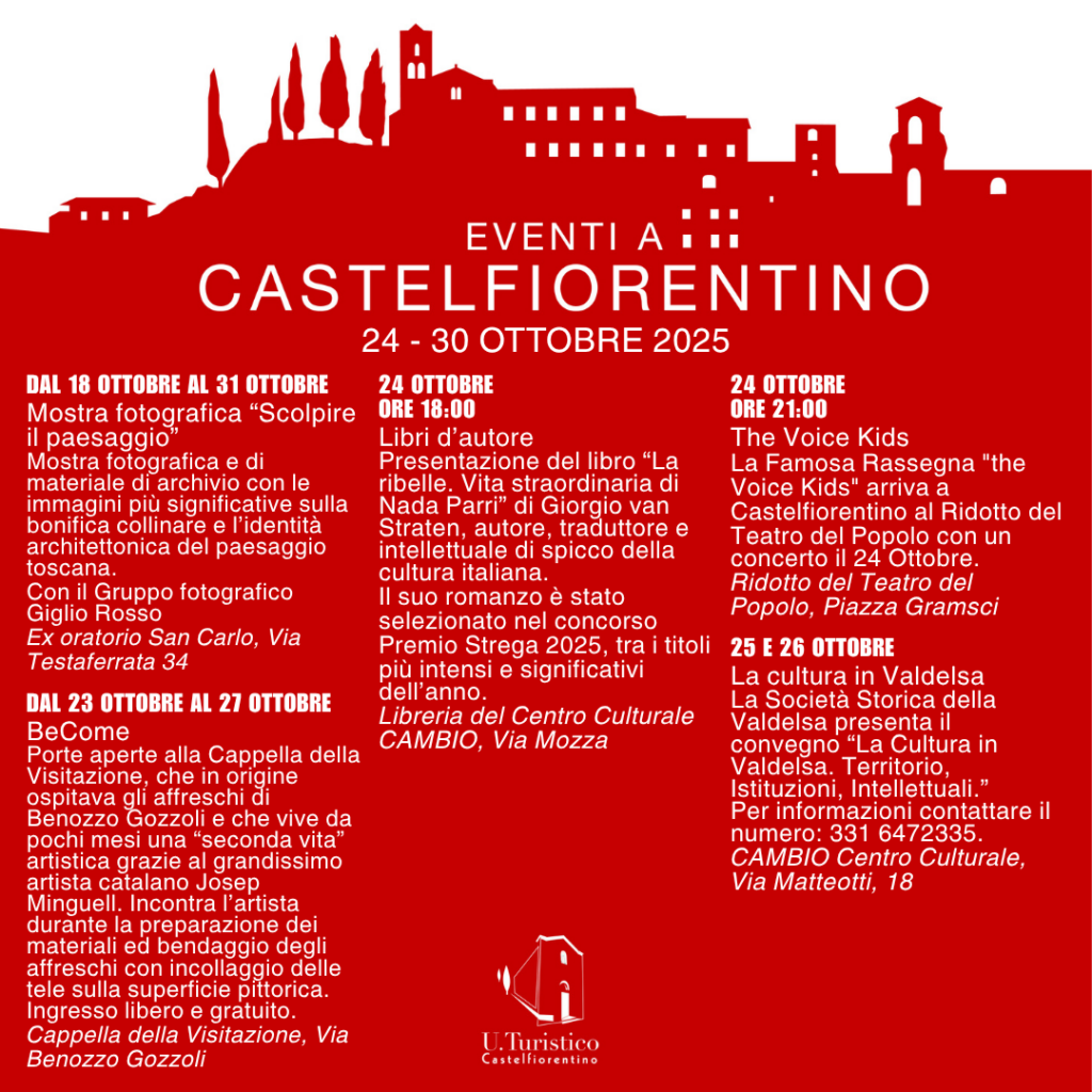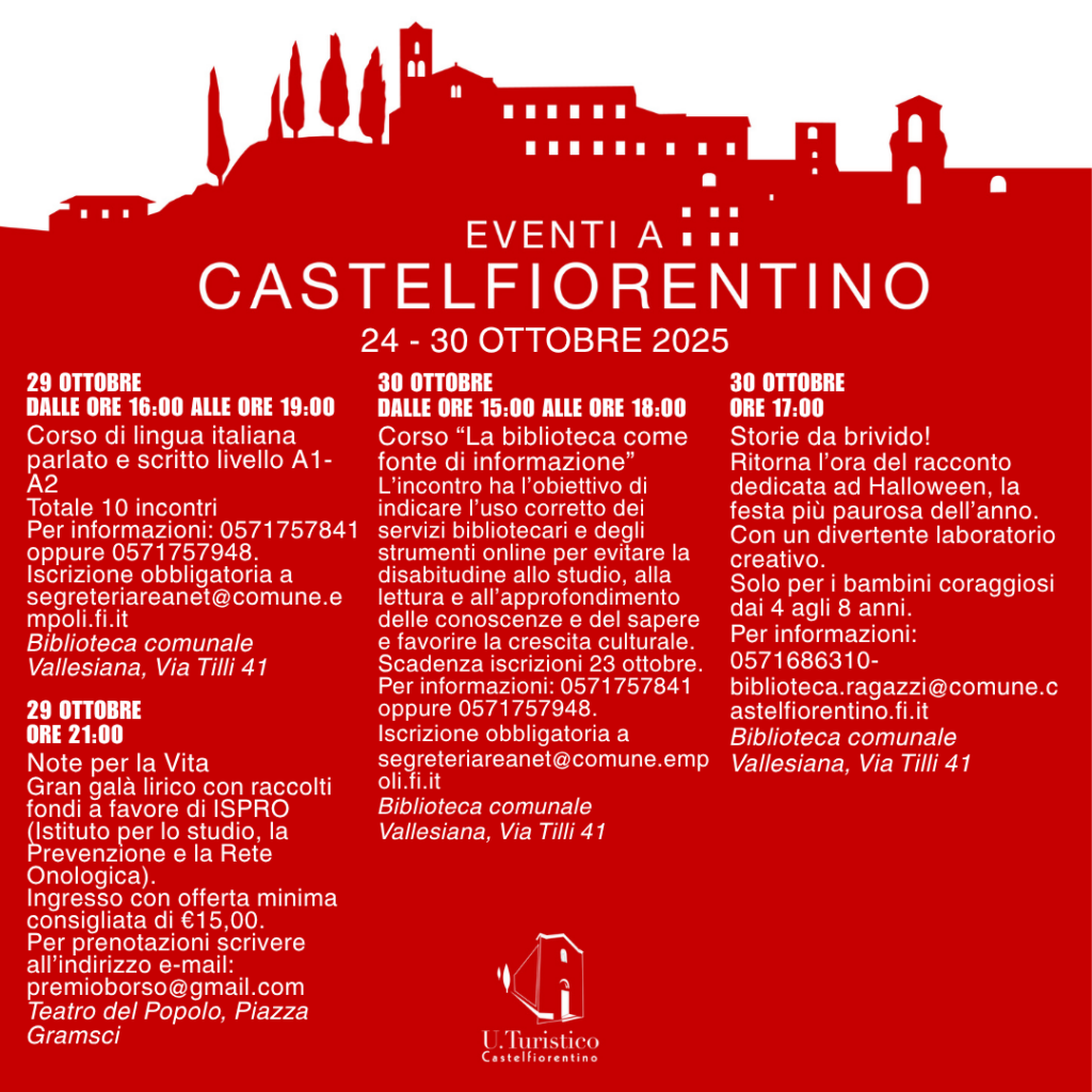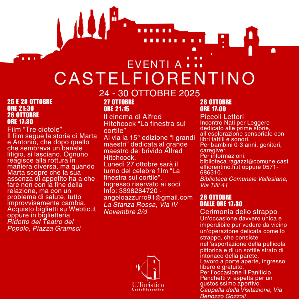 1 giorno ago Stefania Sussi 71visualizzazioni Da Venerdì 24 a Giovedì 30 Ottobre Categories: Eventi Tags: Castelfiorentino, cosa fare, eventi, idee