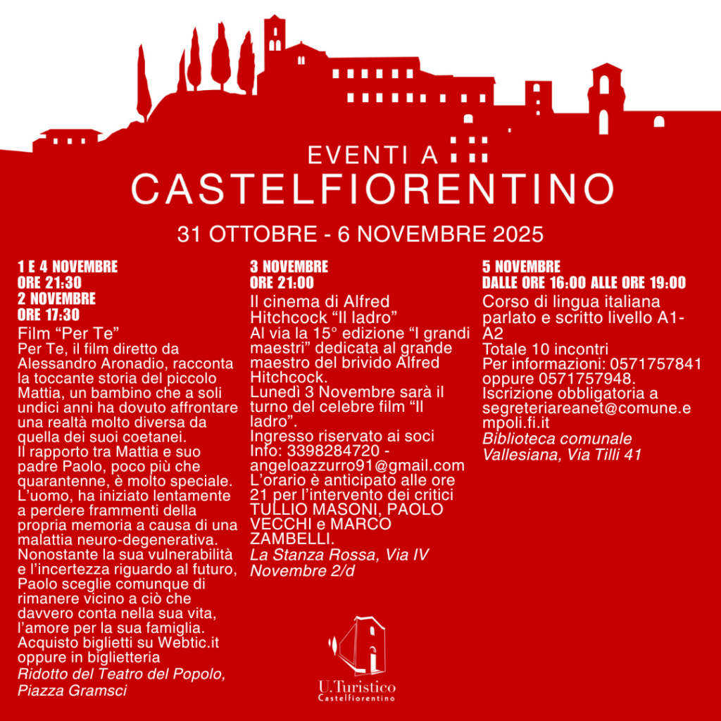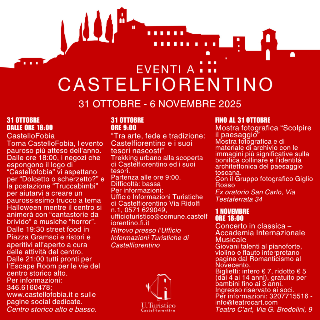 11 ore fa Stefania Sussi 5visualizzazioni Da Venerdì 31 Ottobre a Giovedì 6 Novembre Categories: Eventi Tags: Castelfiorentino, cosa fare, eventi, idee
